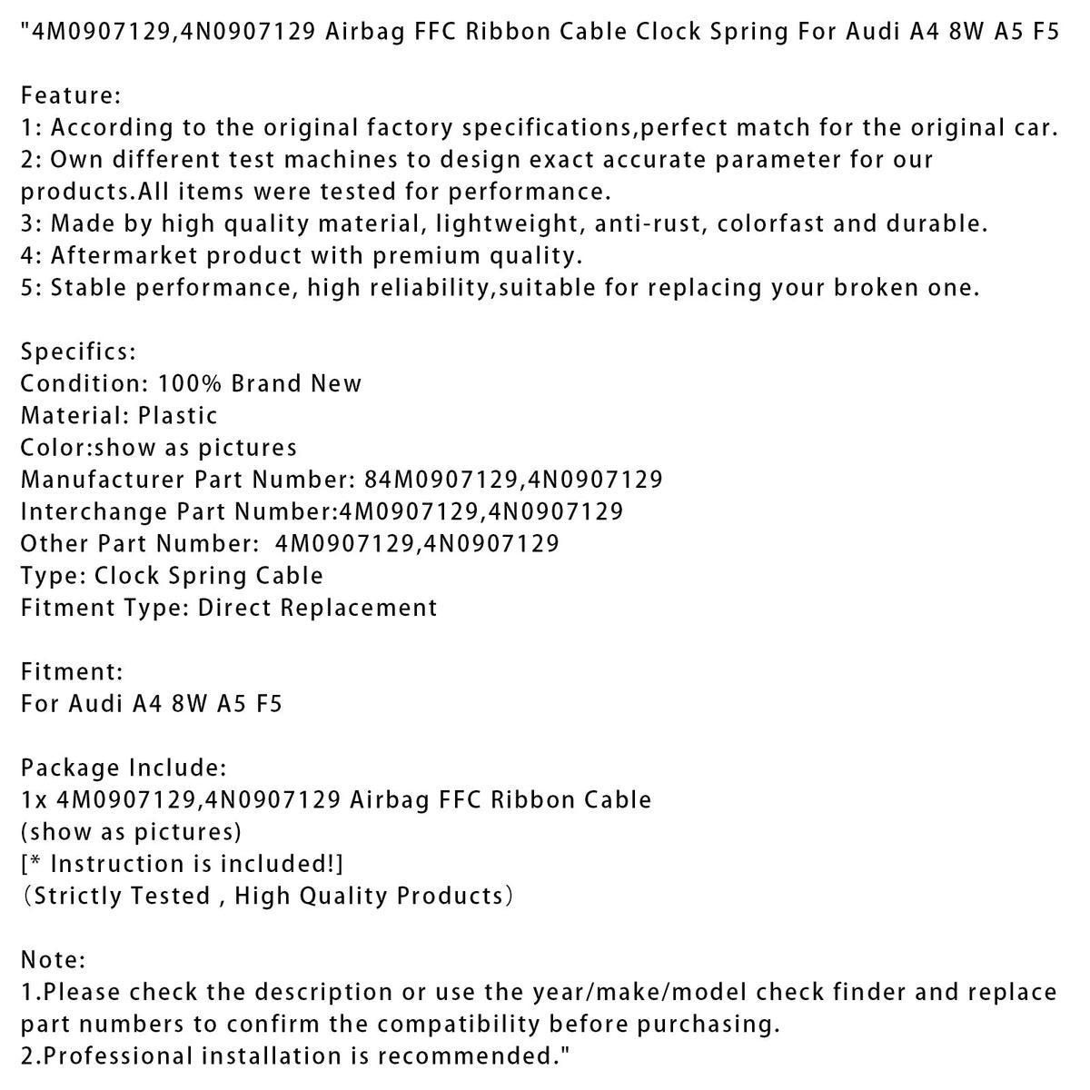 1. Bitte überprüfen Sie vor dem Kauf die Beschreibung oder verwenden Sie den Prüffinder für Jahr/Marke/Modell und ersetzen Sie die Teilenummern, um die Kompatibilität zu bestätigen.