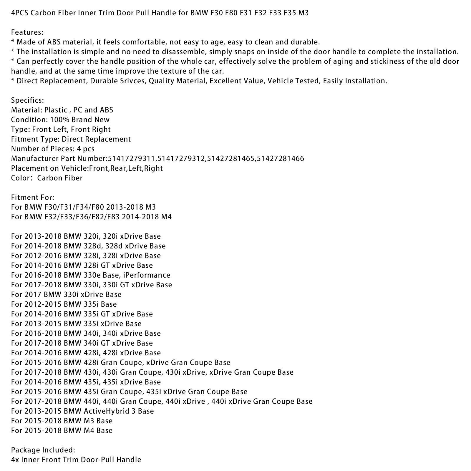 4PCS Carbon Fiber Innen Trim Tür Pull Griff für BMW F30 F80 F31 F32 F33 F35 M3