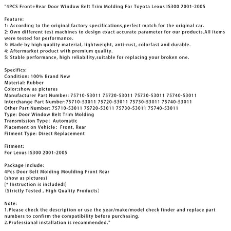 2001-2005 Toyota Lexus IS300 4PCS Front + Rear Door Window Belt Trim Molding