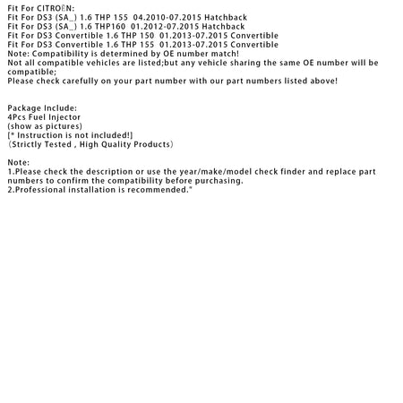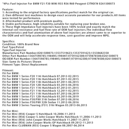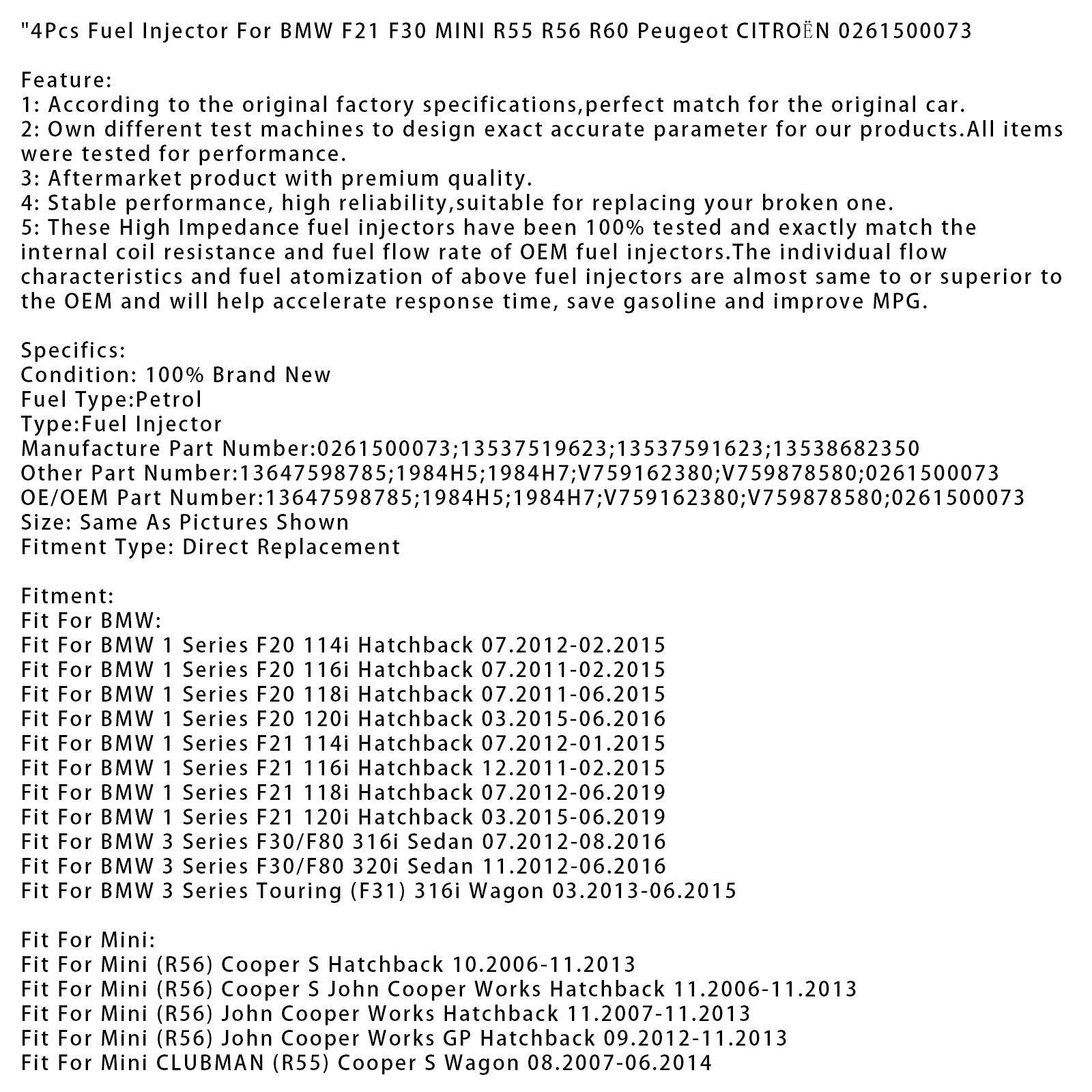 4 Stück Einspritzdüsen für BMW F21 F30 MINI R55 R56 R60 Peugeot CITROËN 0261500073