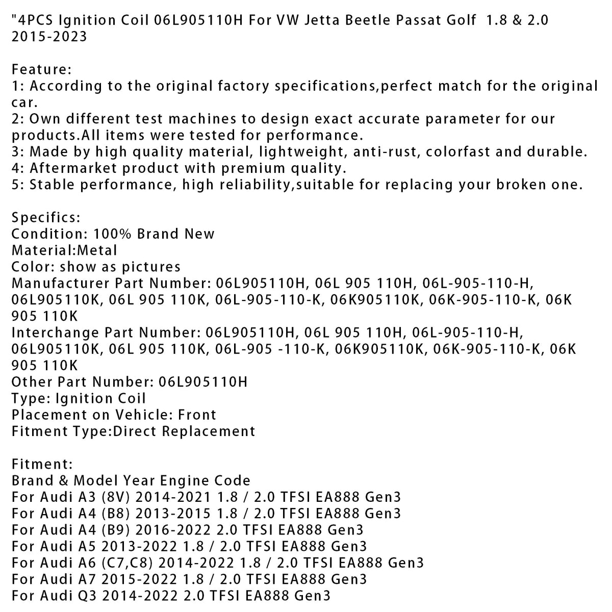 4PCS Zündspule 06L905110H Für VW Jetta Beetle Passat Golf 1,8 & 2,0 15-2023