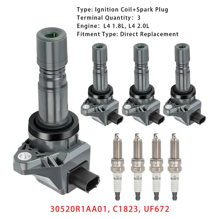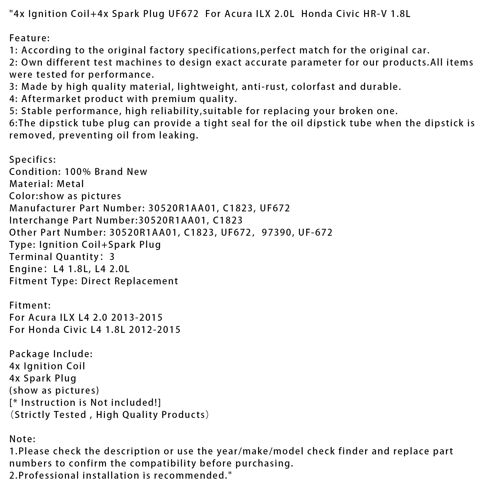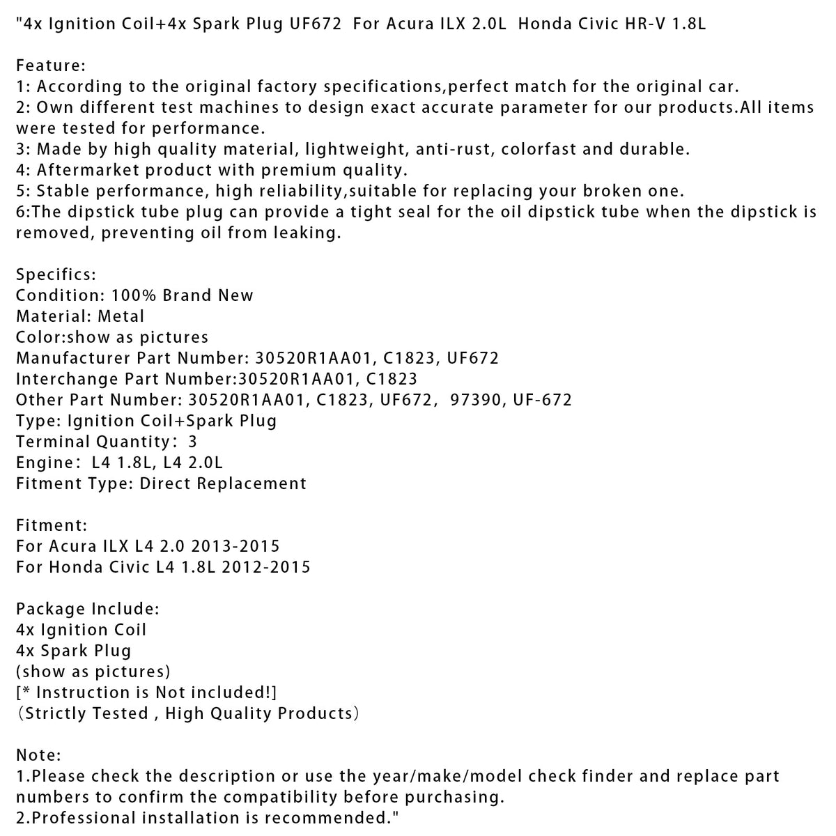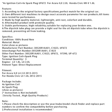 4x Zündspule + 4x Zündkerze UF672 Für Acura ILX 2.0L Honda Civic HR-V 1.8L
