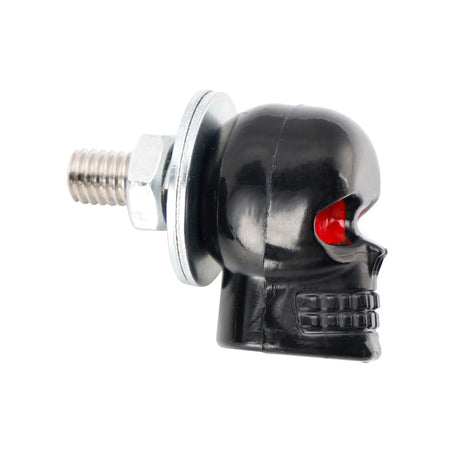 Bolzen mit rotem Totenkopf-Augen-Design zur Befestigung an Nummernschildern.
