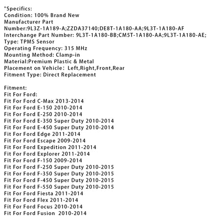 4X TPMS Reifendrucksensor Für Ford Focus Fiesta C-Max Transit DE8T1A180AA
