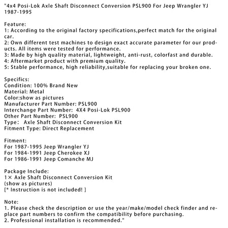 4x4 Posi-Lok Achswellen-Trennkonverter PSL900 für Jeep Wrangler YJ 1987-1995