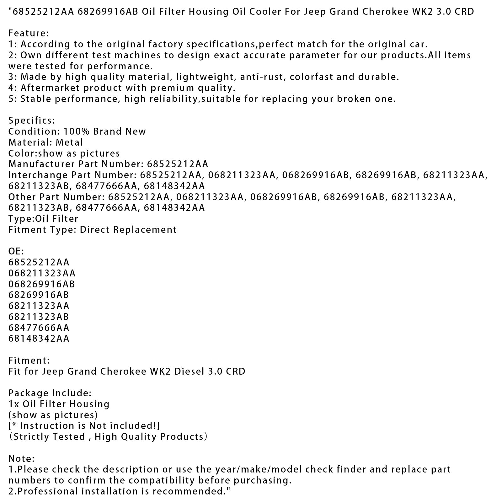 68525212AA 68269916AB Ölfiltergehäuse/Ölkühler für Jeep Grand Cherokee WK2 3.0 CRD