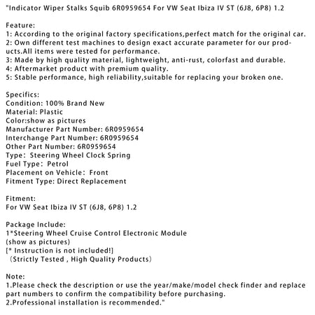 6P8) 1,2 Anzeige Wischer Stiele Squib 6R0959654 Für VW Seat Ibiza IV ST (6J8