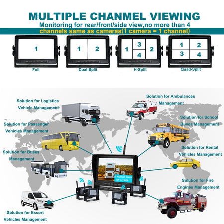 7-Zoll-Monitor mit 4-Kanal-Rückfahrkamera. Lieferumfang: