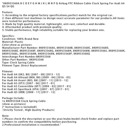2007.08-2015.12 Audi A4 (8K2, B8) Airbag FFC Flachbandkabel Wickelfeder 8K0953568A BCDEFGHMJKLMNPQ