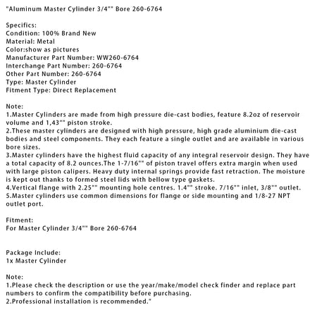 Aluminium-Hauptbremszylinder, 3/4"" Bohrung, 260-6764