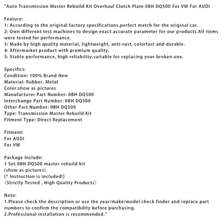 Auto Übertragung Master Rebuild Kit Überholung Kupplung Platte 0BH DQ500 Für VW Für AUDI