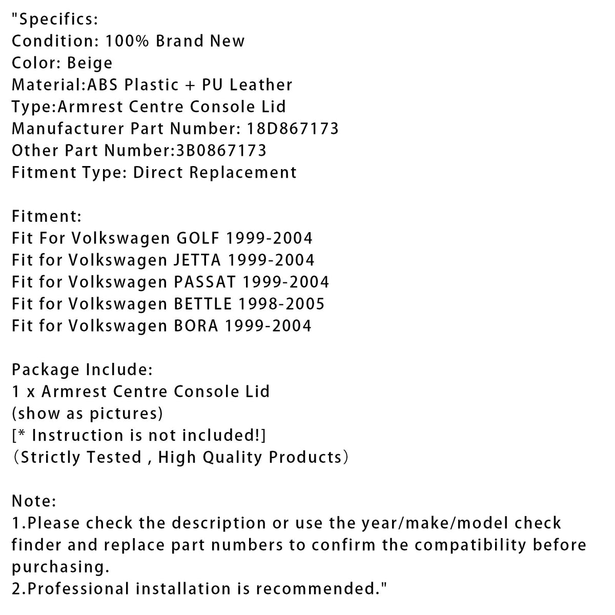1. Bitte überprüfen Sie vor dem Kauf die Beschreibung oder verwenden Sie den Prüffinder für Jahr/Marke/Modell und ersetzen Sie die Teilenummern, um die Kompatibilität zu bestätigen.