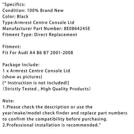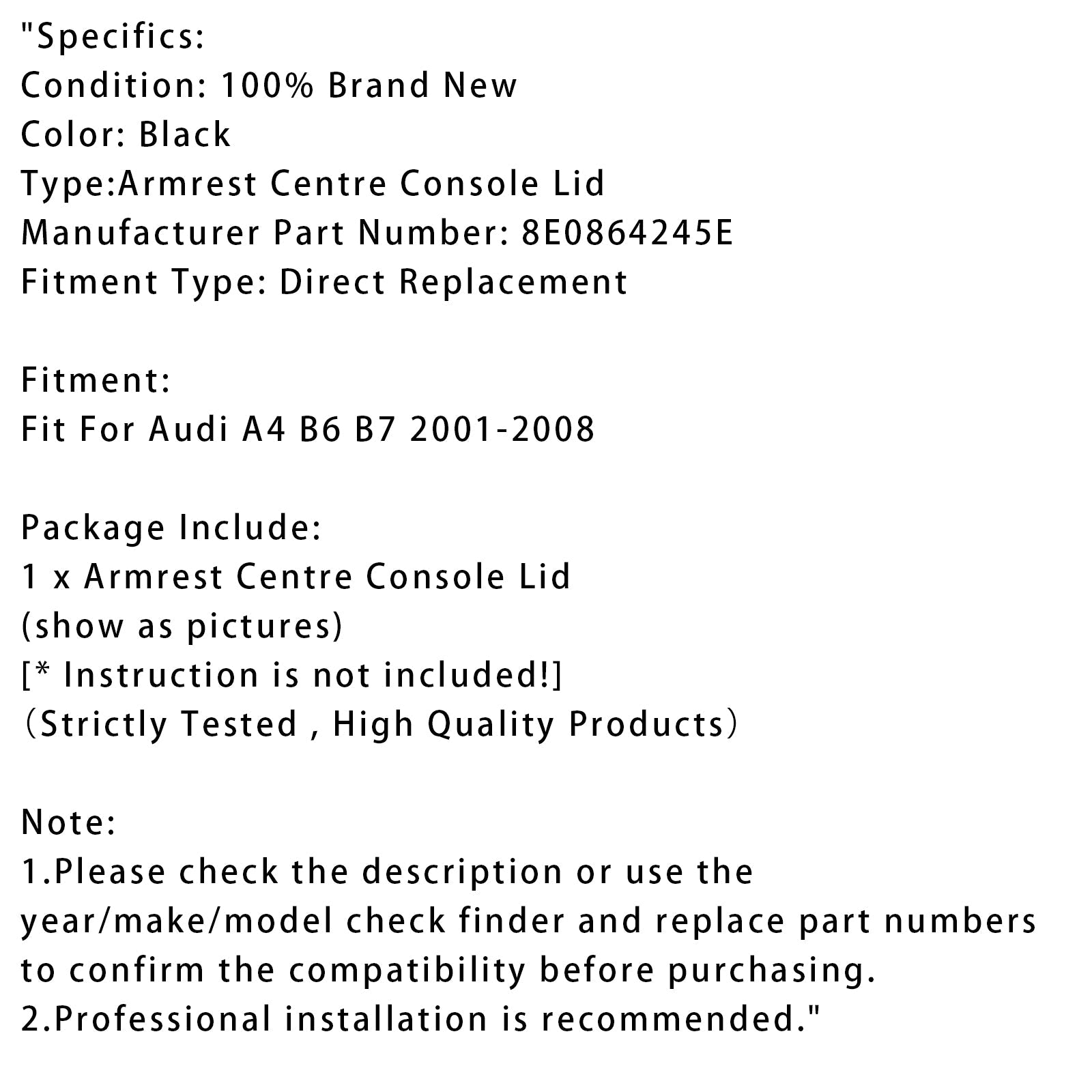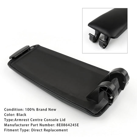 Schwarzer Leder-Armlehnen-Mittelkonsolendeckel für Audi A4 B6 B7 2001-2008 8E0864245E