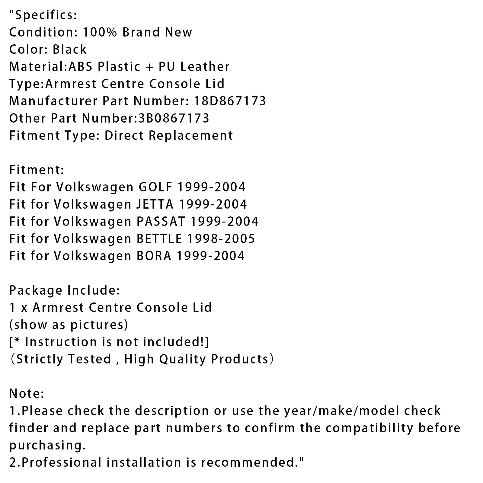 Schwarzer Leder-Armlehnendeckel für die Mittelkonsole für VW MK4 Jetta Bora Golf 18D867173