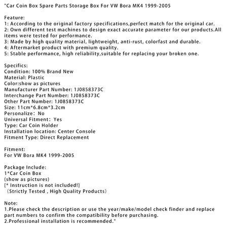 Auto Münze Box Ersatzteile Lagerung Box Für VW Bora MK4 1999-2005