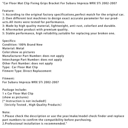Auto Boden Matte Clip Befestigung Griffe Halterung Für Subaru Impreza WRX STi 2002-2007