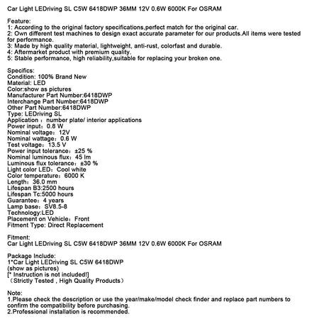 Auto Licht LEDriving SL C5W 6418DWP 36MM 12V 0,6W 6000K Für OSRAM