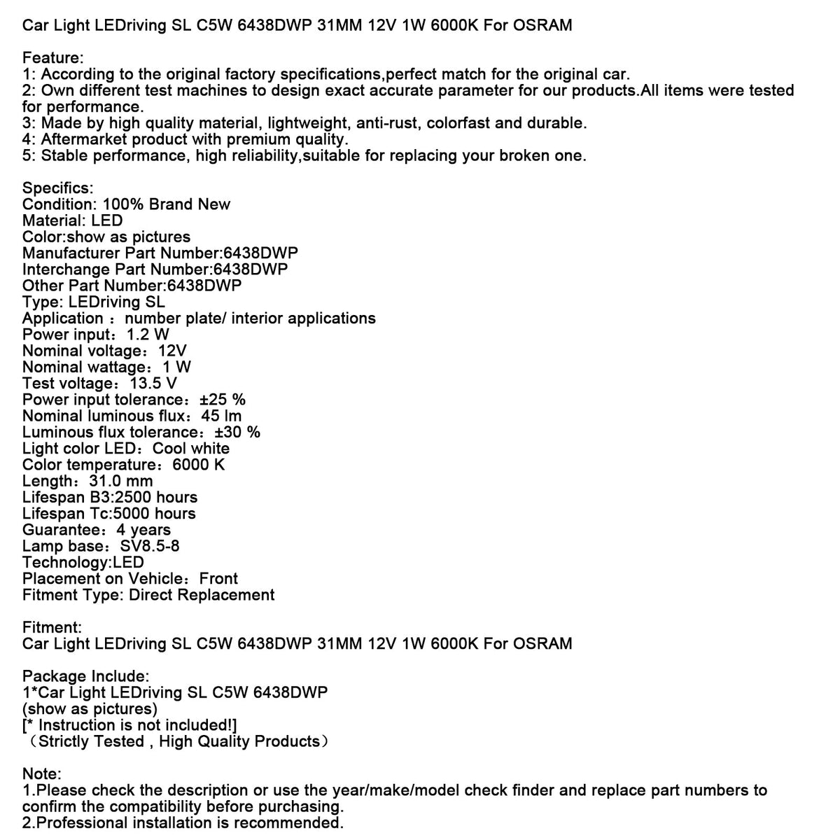 1. Bitte überprüfen Sie vor dem Kauf die Beschreibung oder verwenden Sie den Prüffinder für Jahr/Marke/Modell und ersetzen Sie die Teilenummern, um die Kompatibilität zu bestätigen.