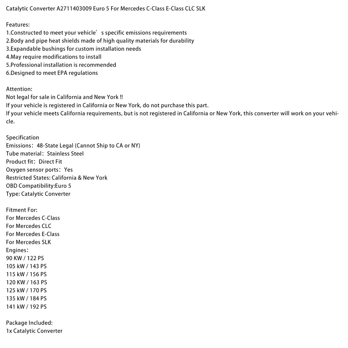 Katalysator A2711403009 Euro 5 Passend für Mercedes C-Klasse, E-Klasse, CLC, SLK