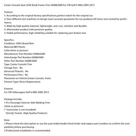 Mittelkonsolen-Schaltknauf-Rahmenverkleidung 5K0863680 Passend für VW Golf 6 MK6 2009-2013