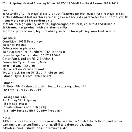 Wickelfeder Beheiztes Lenkrad FG1Z-14A664-B Für Ford Taurus 2015-2019