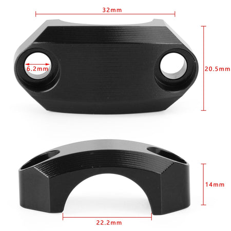 Ces colliers de support de maître-cylindre s'adaptent à la pointe arrière du support de maître-cylindre de frein avant ou d'embrayage et sont FOURNIS AVEC DES VIS DE FIXATION. Fragment="1"> Universel s'adapte à la plupart des vélos tout-terrain avec guidon de 22 mm, il suffit de vérifier les dimensions avant d'acheter. EN CAS DE CHOCS ÉVITANT DES DOMMAGES IMPORTANTS À LA BARRE D'EMBRAYAGE OU AU MAITRE-CYLINDRE. "1"> Le forfait comprend : 1x collier de maître-cylindre