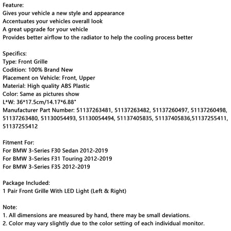 2012-2019 BMW 3er F30 Limousine Doppellamellen-Nierengrill