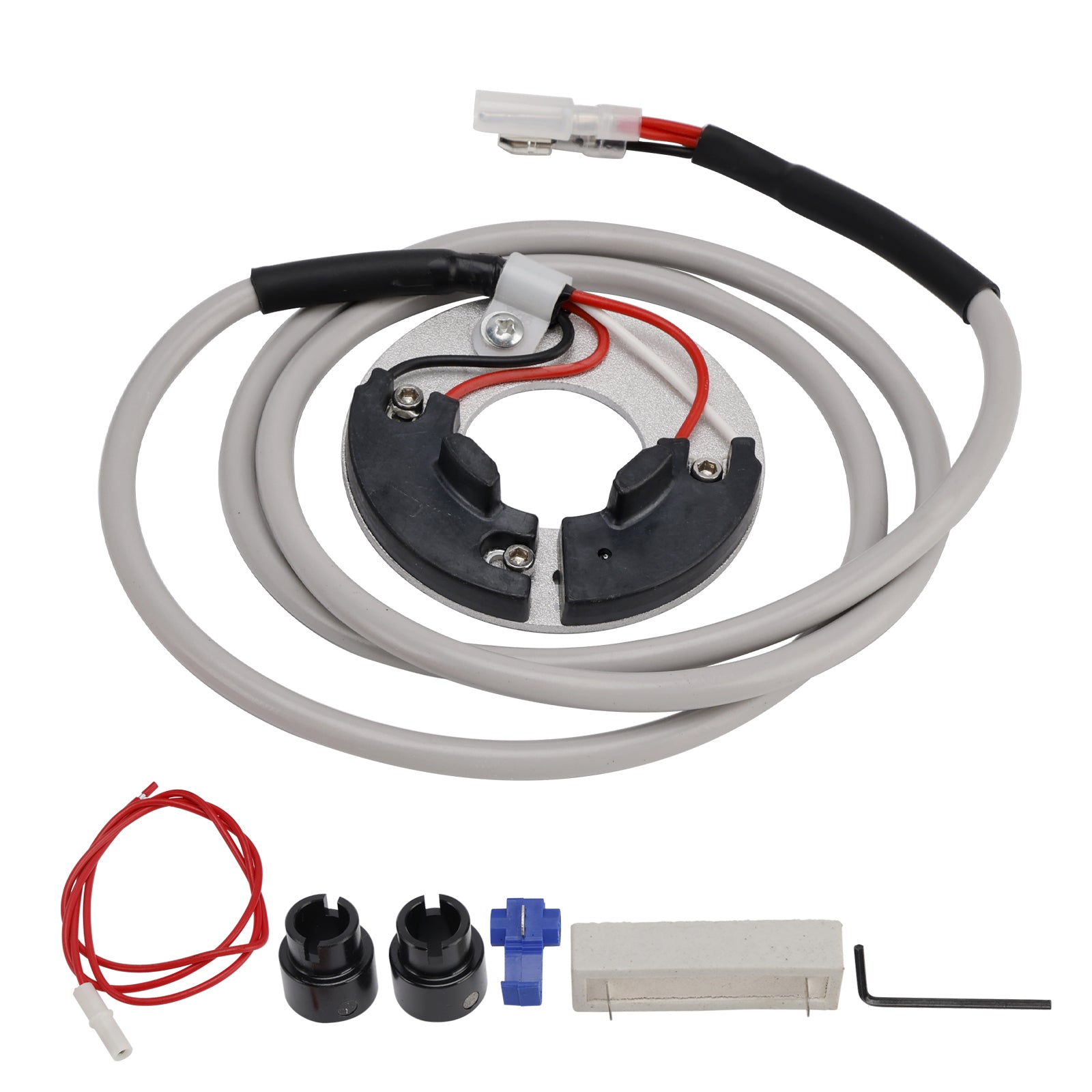 Befindet sich hinter der Zündabdeckung und verwendet einen Magnetrotor mit dem originalen Zündvorversteller, sodass die werkseitige Vorverstellkurve beibehalten wird.