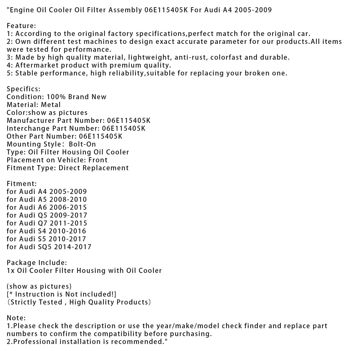1. Bitte überprüfen Sie vor dem Kauf die Beschreibung oder verwenden Sie den Prüffinder für Jahr/Marke/Modell und ersetzen Sie die Teilenummern, um die Kompatibilität zu bestätigen.