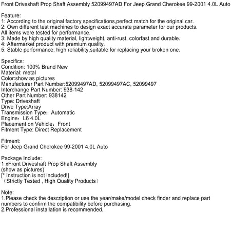 1999-2001 Jeep Grand Cherokee 4.0L Vordere Antriebswelle Propellerwelle Montage 52099497AD