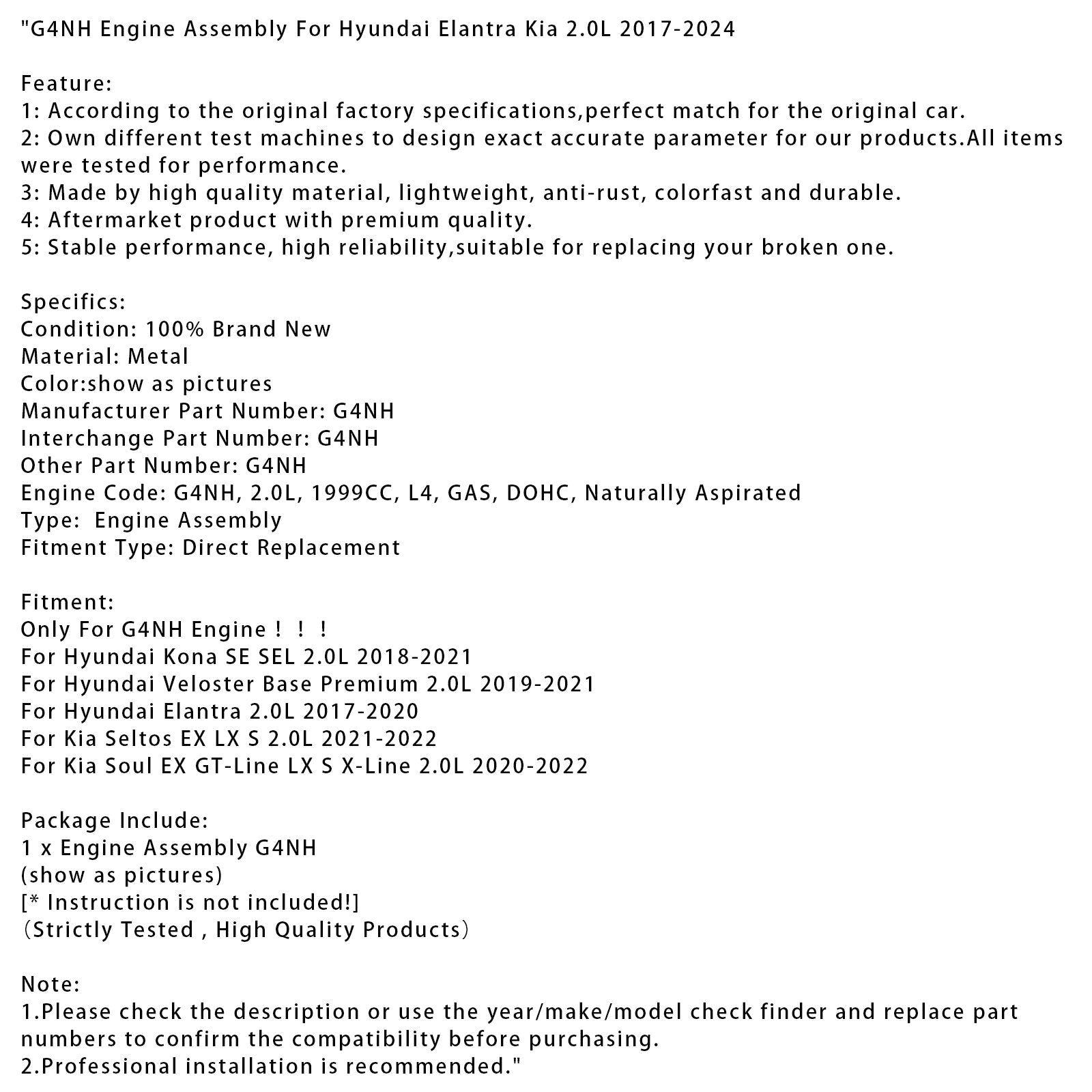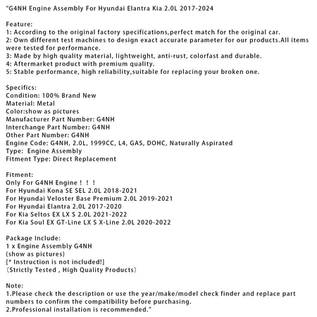 G4NH-Motorbaugruppe für Hyundai Elantra Kia 2.0L 2017-2024