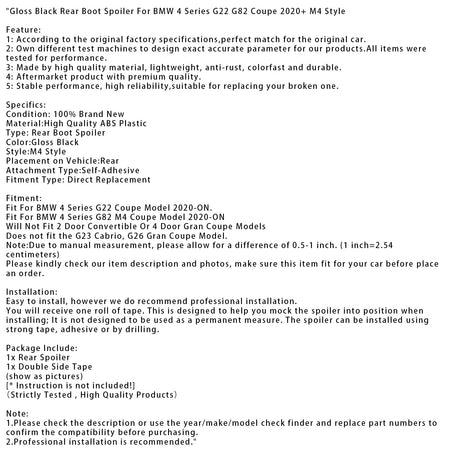 Heckspoiler in Hochglanzschwarz, passend für BMW 4er G22 G82 Coupé ab 2020, M4-Style