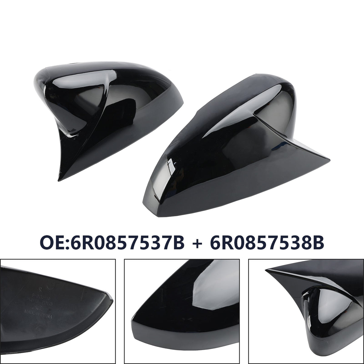 Links + Rechts Glanz Schwarz Flügel Tür Spiegel Abdeckung Kappen Fit für VW Polo MK5 09-17