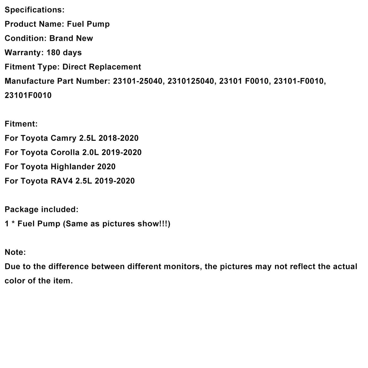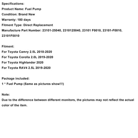 Hochdruck Kraftstoff Pumpe 23101-25040 Fit Toyota Camry Corolla Highlander RAV4