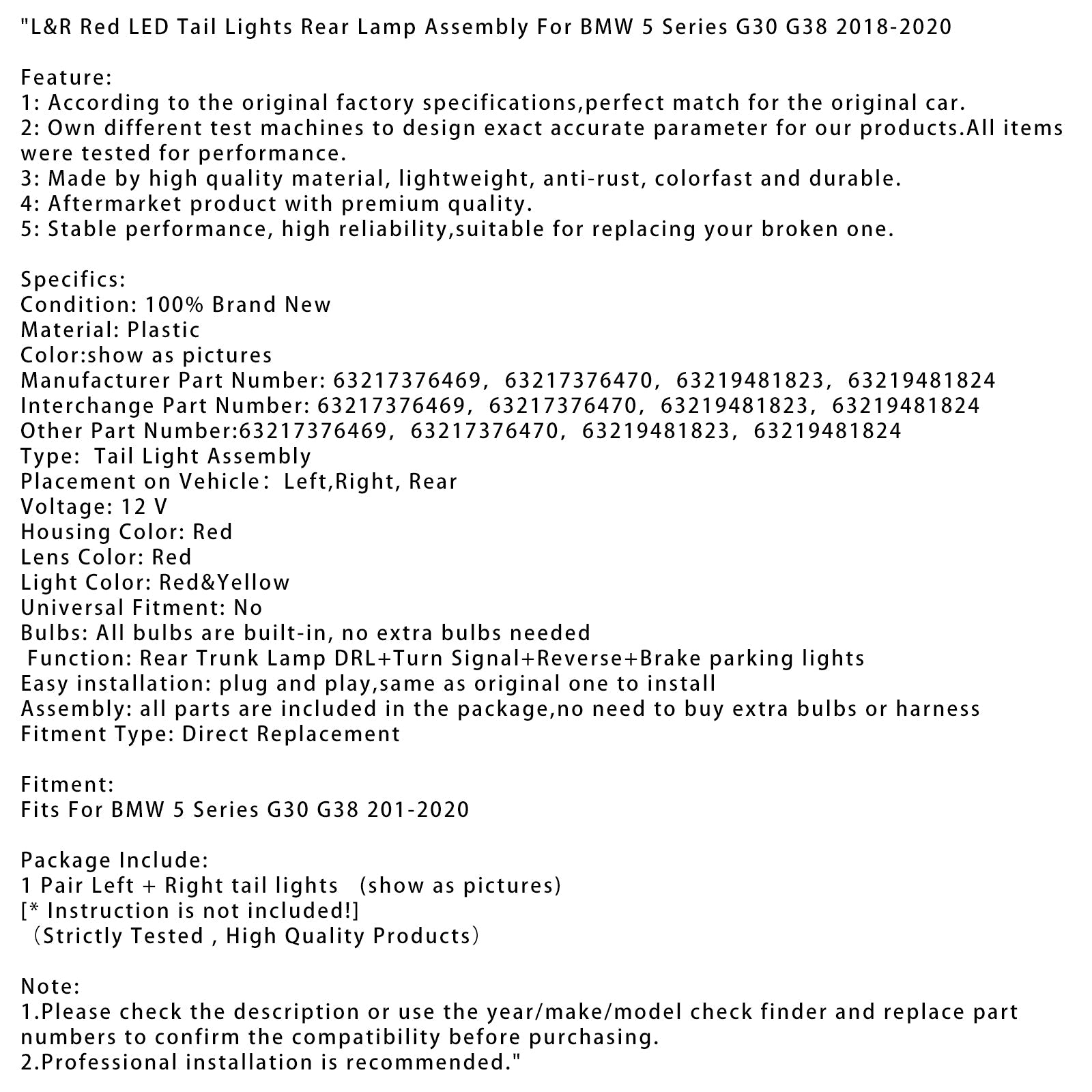 L&R Rote LED Rückleuchten Hinten Lampe Montage Für BMW 5 Series G30 G38 2018-2020
