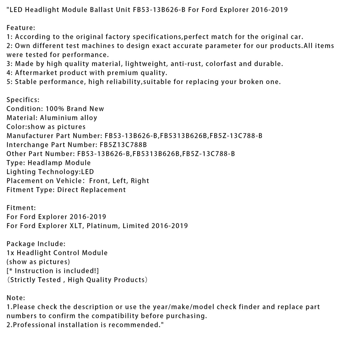 LED-Scheinwerfermodul Vorschaltgerät FB53-13B626-B Für Ford Explorer 2016-2019