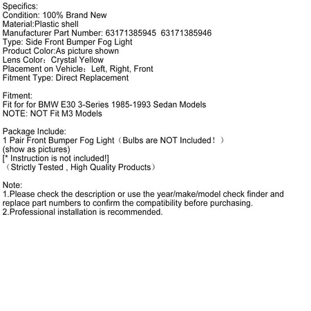 LH RH Paar Frontstoßstange Nebelscheinwerfer ohne Blubs für BMW E30 3er 1985-1993