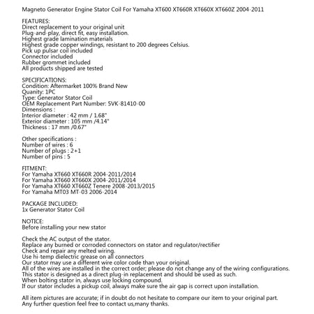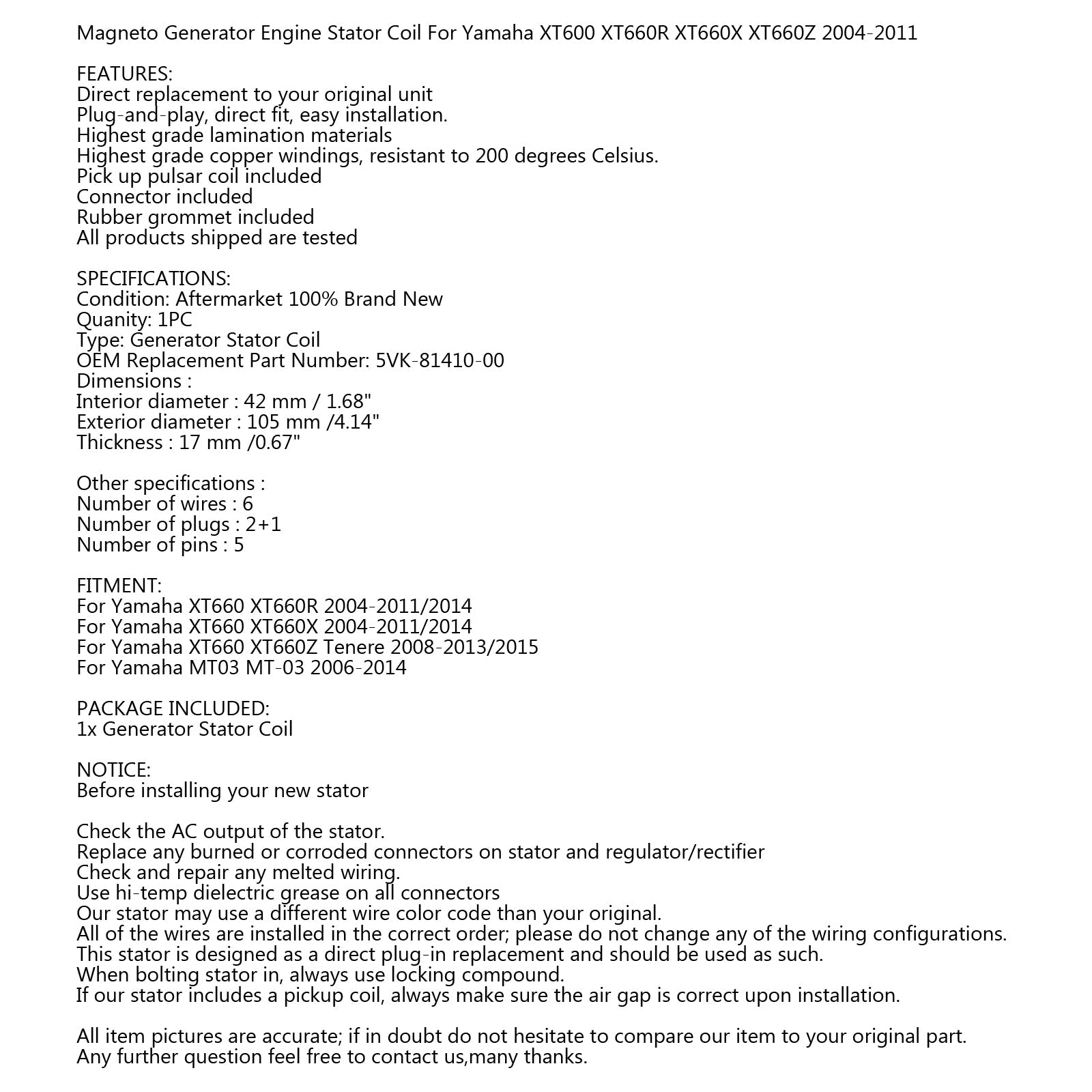 Bobine de stator de générateur pour Yamaha XT660 XT660R/X 2004-2014 XT660Z Tenere 08-15 Générique
