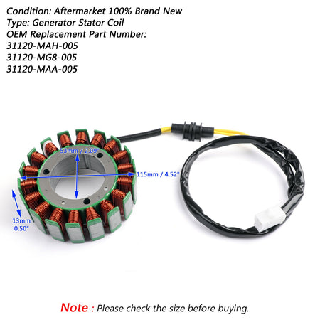 Générateur Stator Bobine Alternateur pour Honda VT 1100 C2 C3 Shadow ACE Aero Saber Spirit 85 - 07