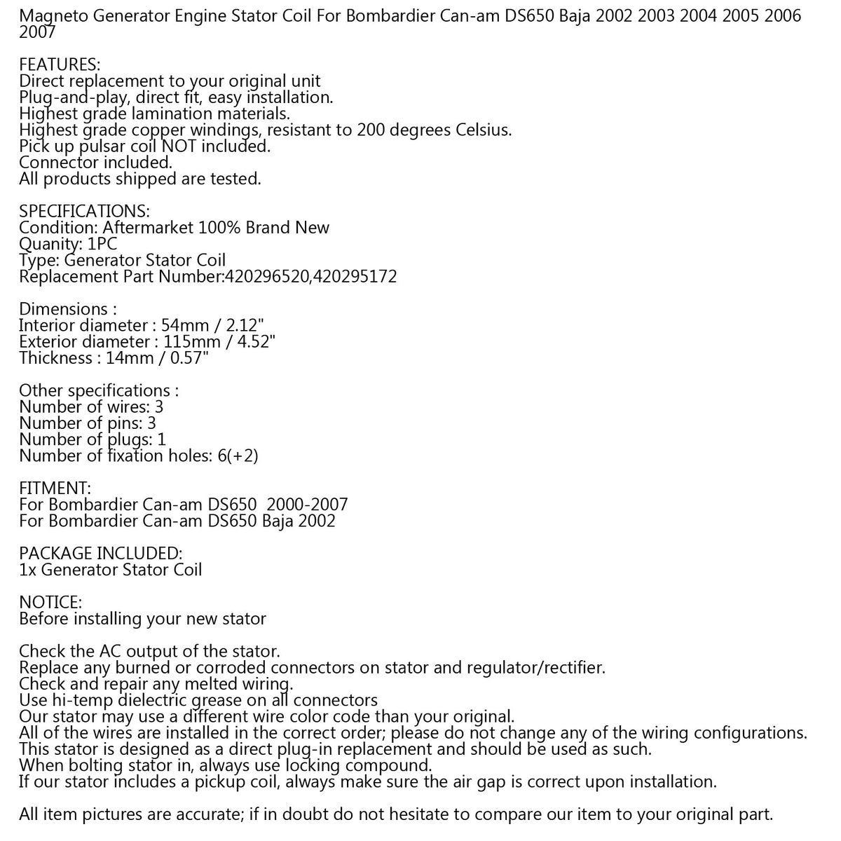 Bobine de stator d'alternateur pour Bombardier Can-Am DS650 2000-2007 420296520 420295172 Générique