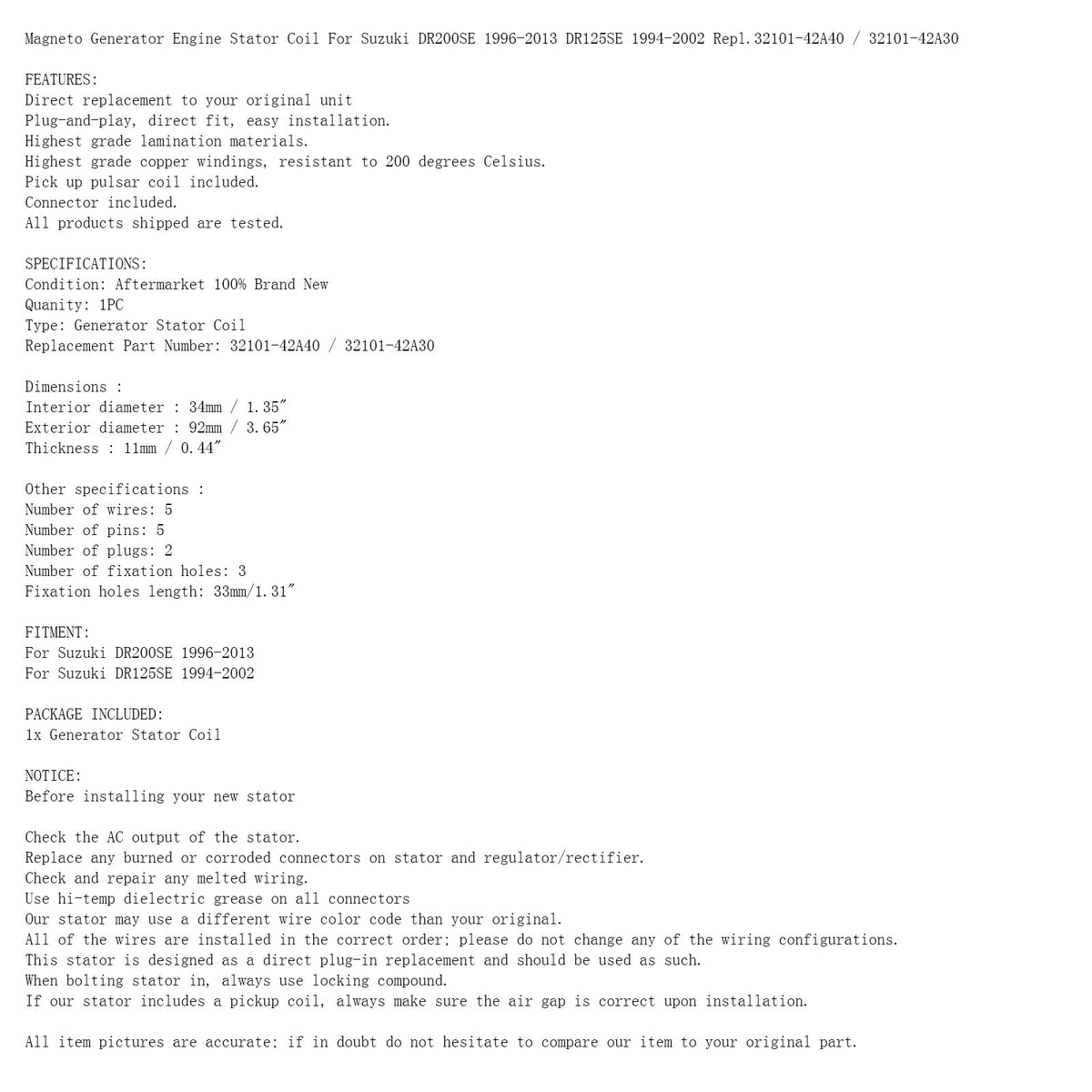 Bobine de Stock de moteur de générateur d'aimant pour Suzuki DR 125 200 SE 1994-2013 32101-42A30 32101-42A40