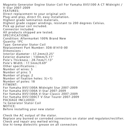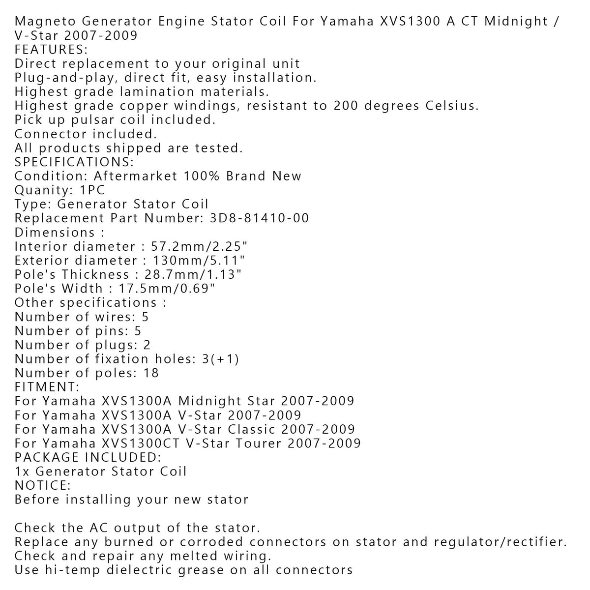 Bobine de stator magnéto pour Yamaha XVS1300 V-Star / Midnight Star 07-09 3D8-81410-00 Générique