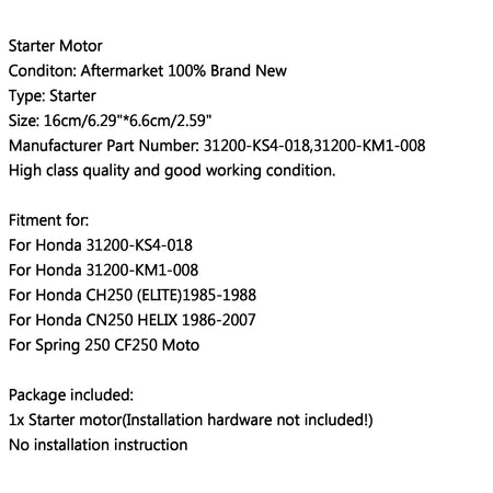 Démarreur moteur pour Honda CH250 Elite 1985-1988 CN250 Helix 1986-2007 Spring 250 générique