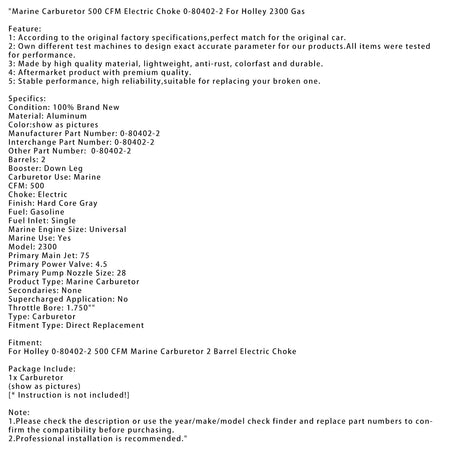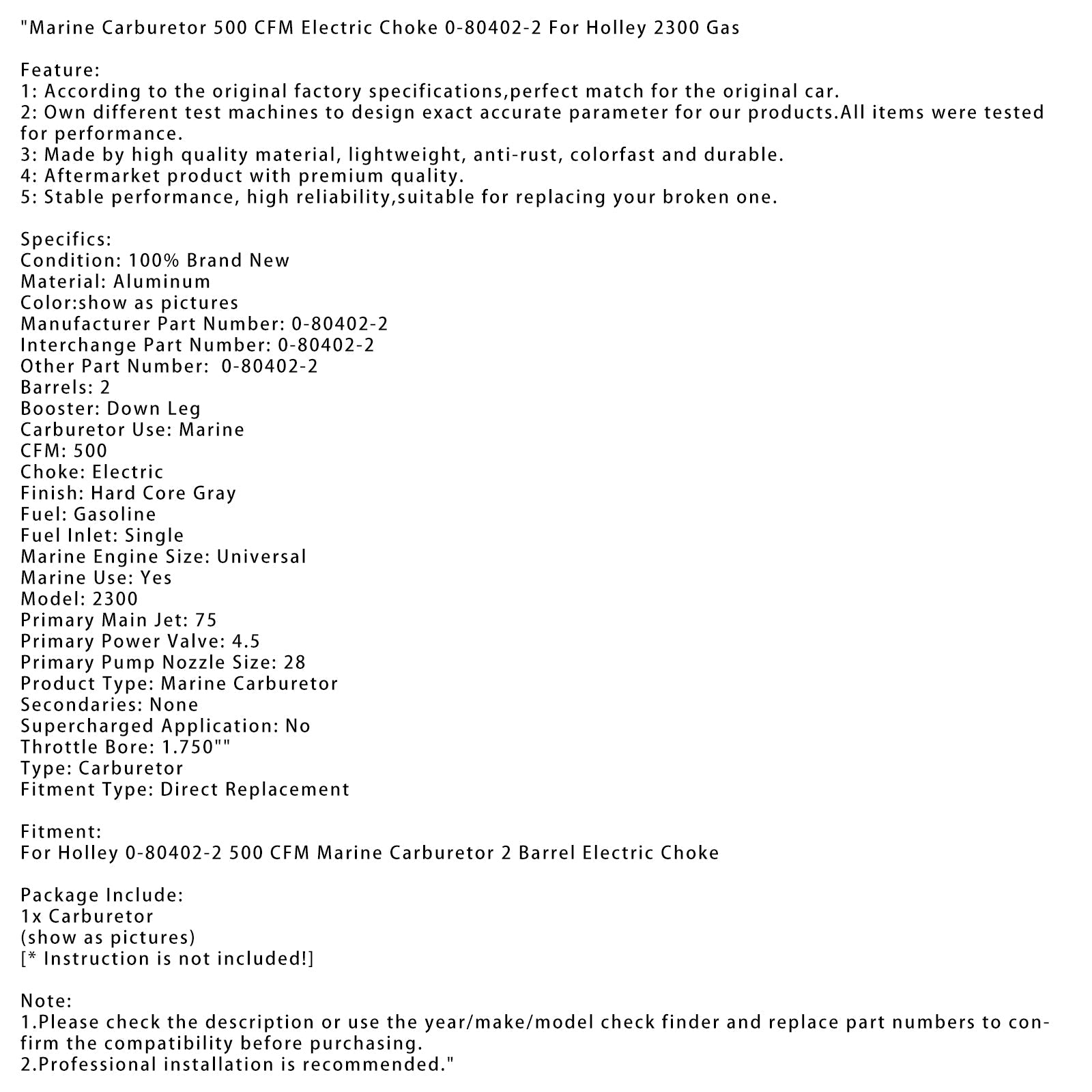 Holley 2300 Gas Marine Vergaser 500 CFM Elektrischer Choke 0-80402-2