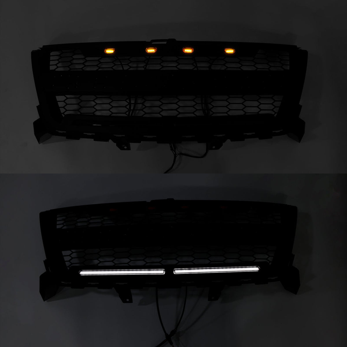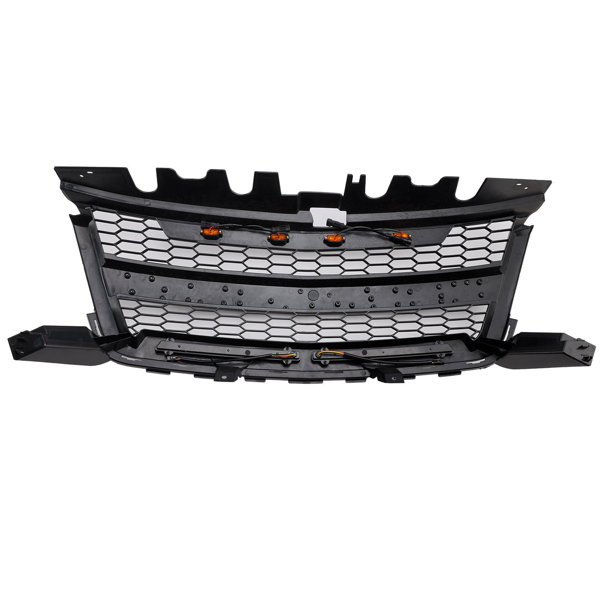 Mattschwarzer Kühlergrill für die Frontsto?stange, passend für Chevy Colorado 2016–2020, mit LED