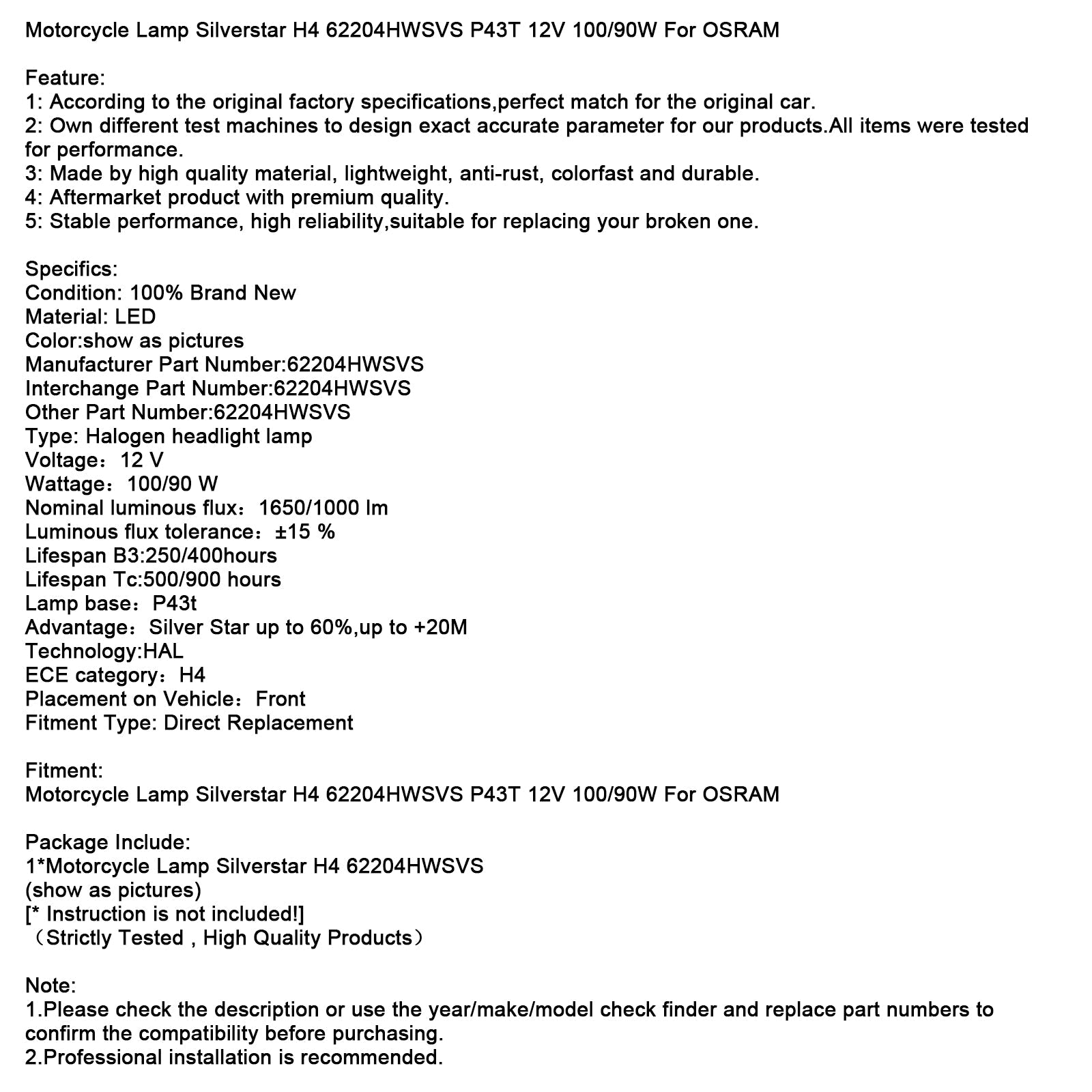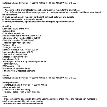 Motorradlampe Silverstar H4 62204HWSVS P43T 12V 100/90W für OSRAM