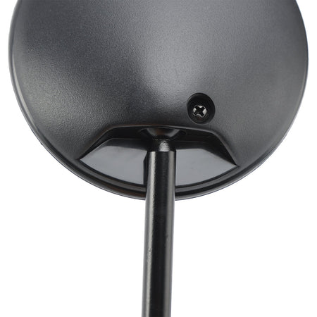 Der Stahlschaft und die Mutter dieser Spiegel sind schwarz pulverbeschichtet.