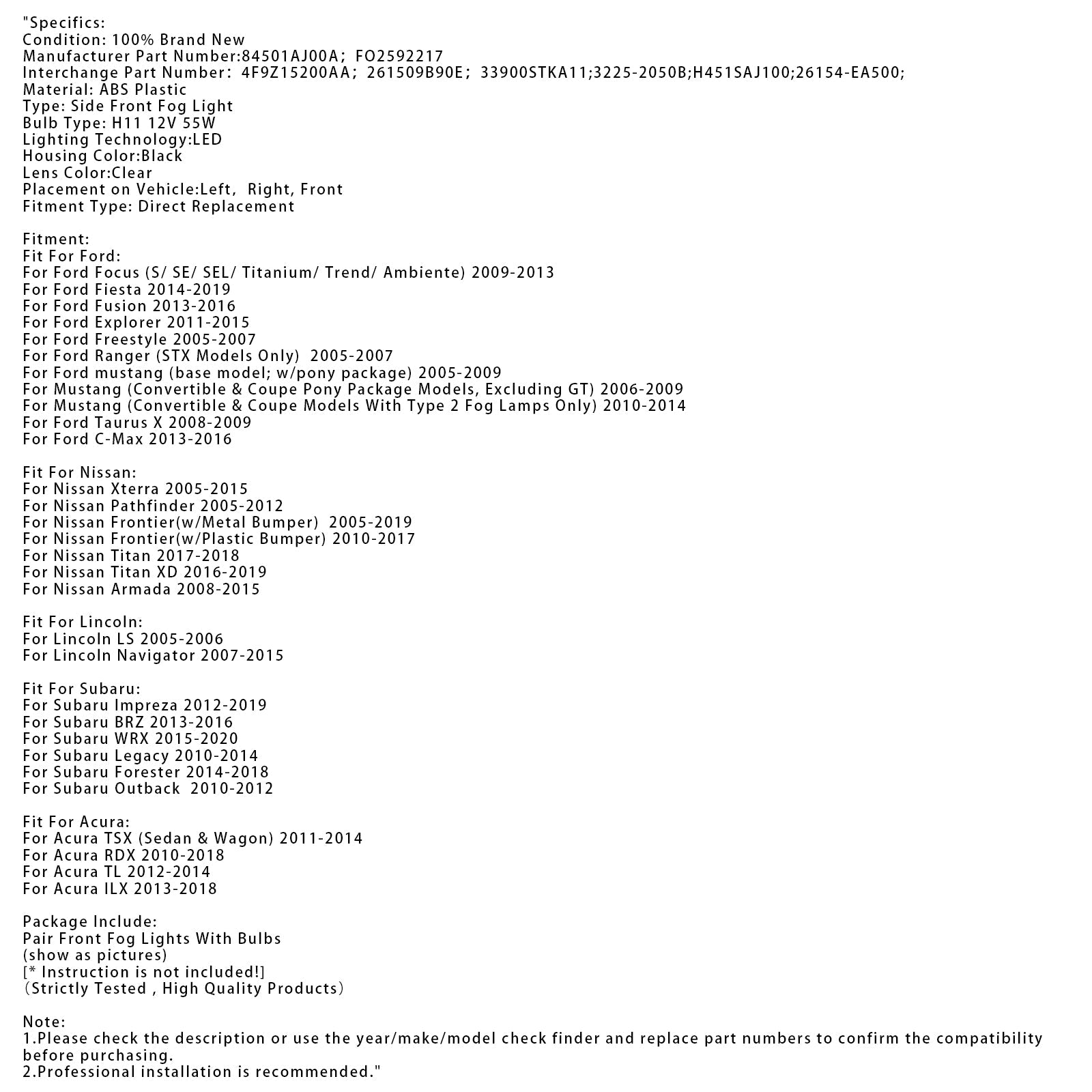 1. Bitte überprüfen Sie vor dem Kauf die Beschreibung oder verwenden Sie den Prüffinder für Jahr/Marke/Modell und ersetzen Sie die Teilenummern, um die Kompatibilität zu bestätigen.