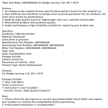 Hinterachse Bdorc 68058066AB Für Dodge Journey 3.6L 2011-2019