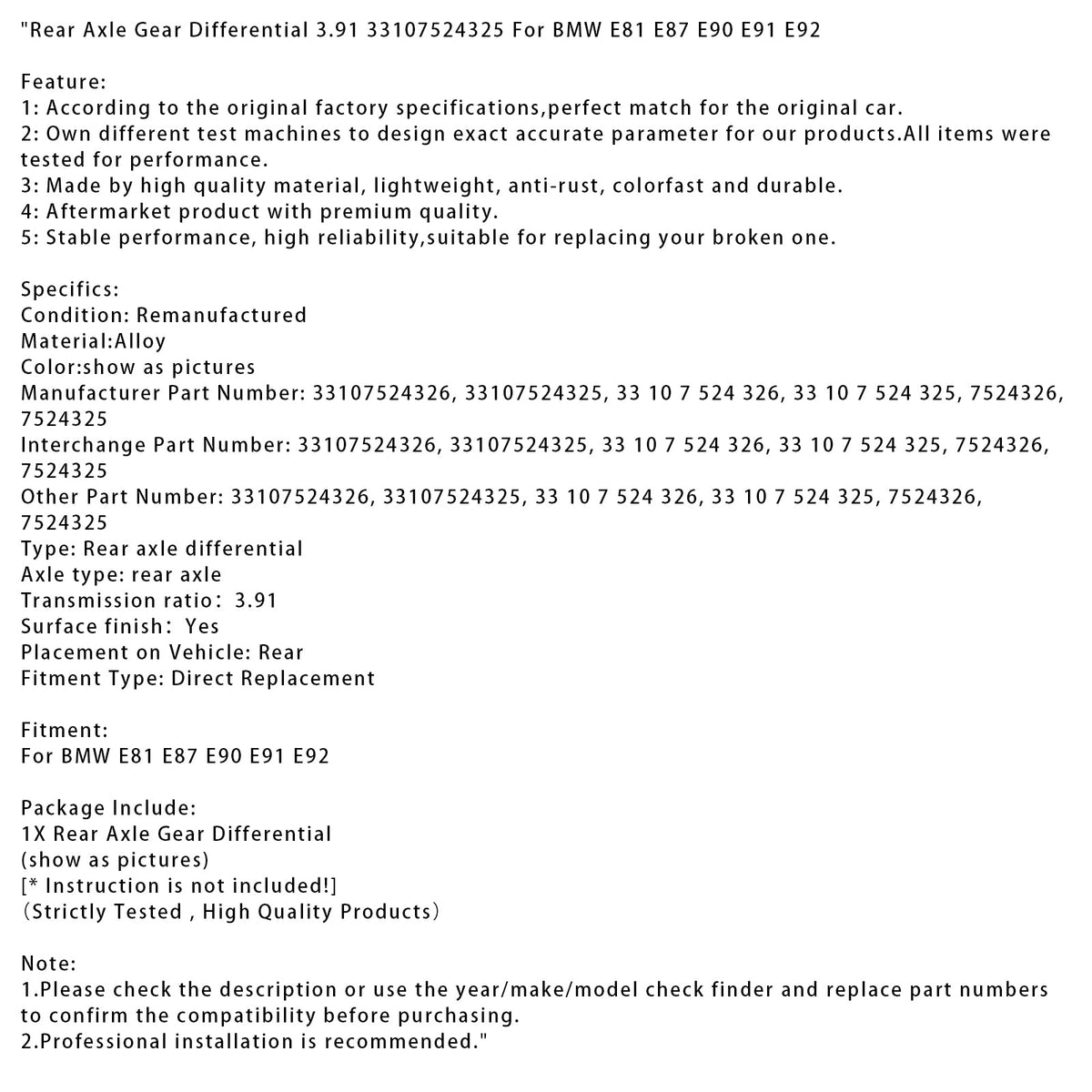 Hinterachse Getriebe Differential 3,91 33107524325 Für BMW E81 E87 E90 E91 E92